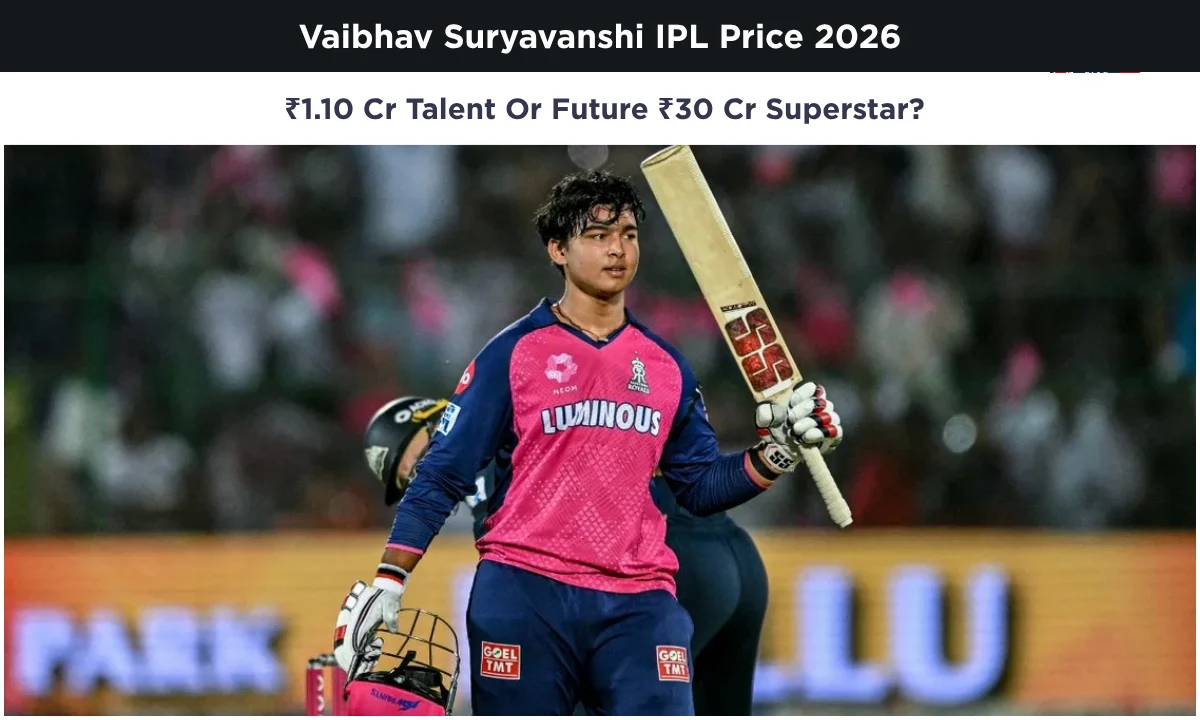 Vaibhav Suryavanshi IPL Price 2026: βΉ1.10 Cr Talent Or Future βΉ30 Cr Superstar?