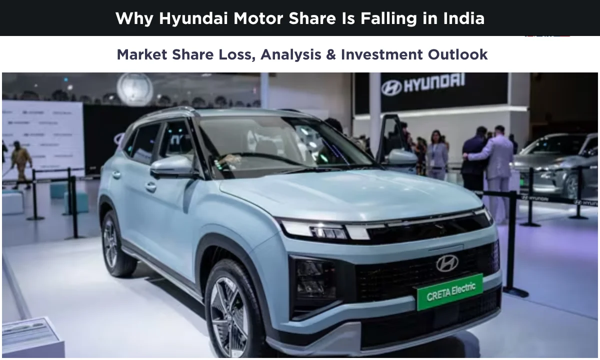 Why Hyundai Motor Share Is Falling in India: Market Share Loss, Analysis & Investment Outlook